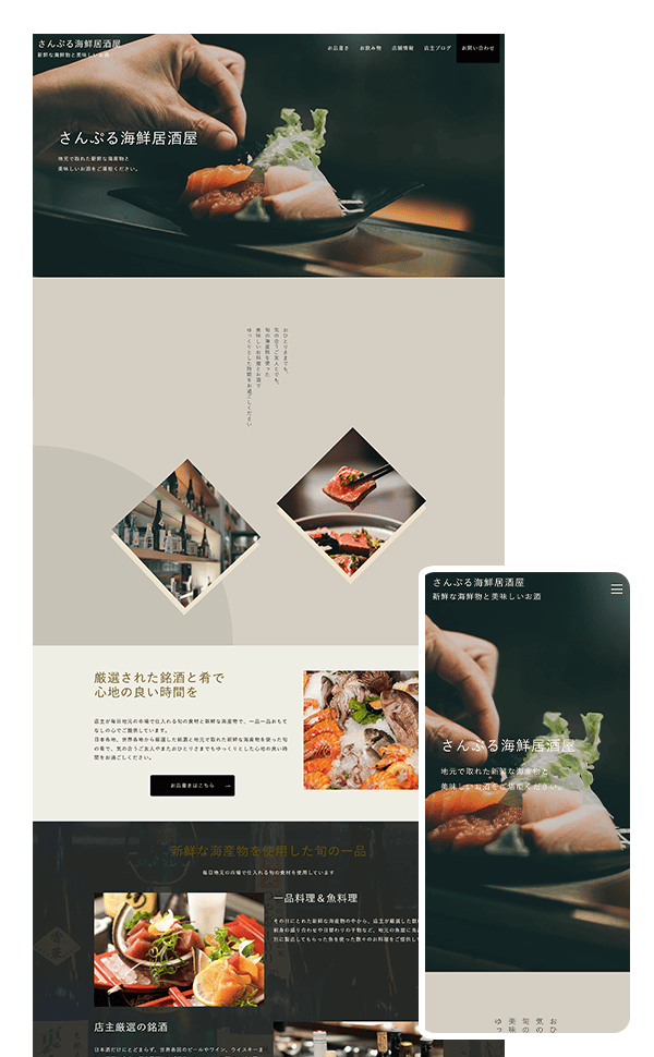 伝統工芸から現代アートまで幅広いクリエイティブ分野に応用可能な汎用性の高さが魅力のテンプレートになります。写真とテキストを差し替えるだけで、業種の特性を活かしながら上品で信頼感のあるブランドイメージを構築できる柔軟性を備えています。